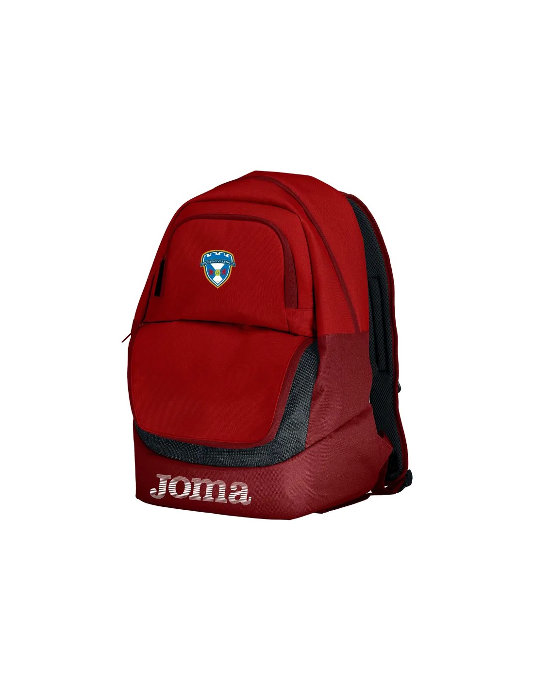 Logotipo Joma serigrafiado con diseño personalizado en la parte frontal a conjunto con el resto de detalles.